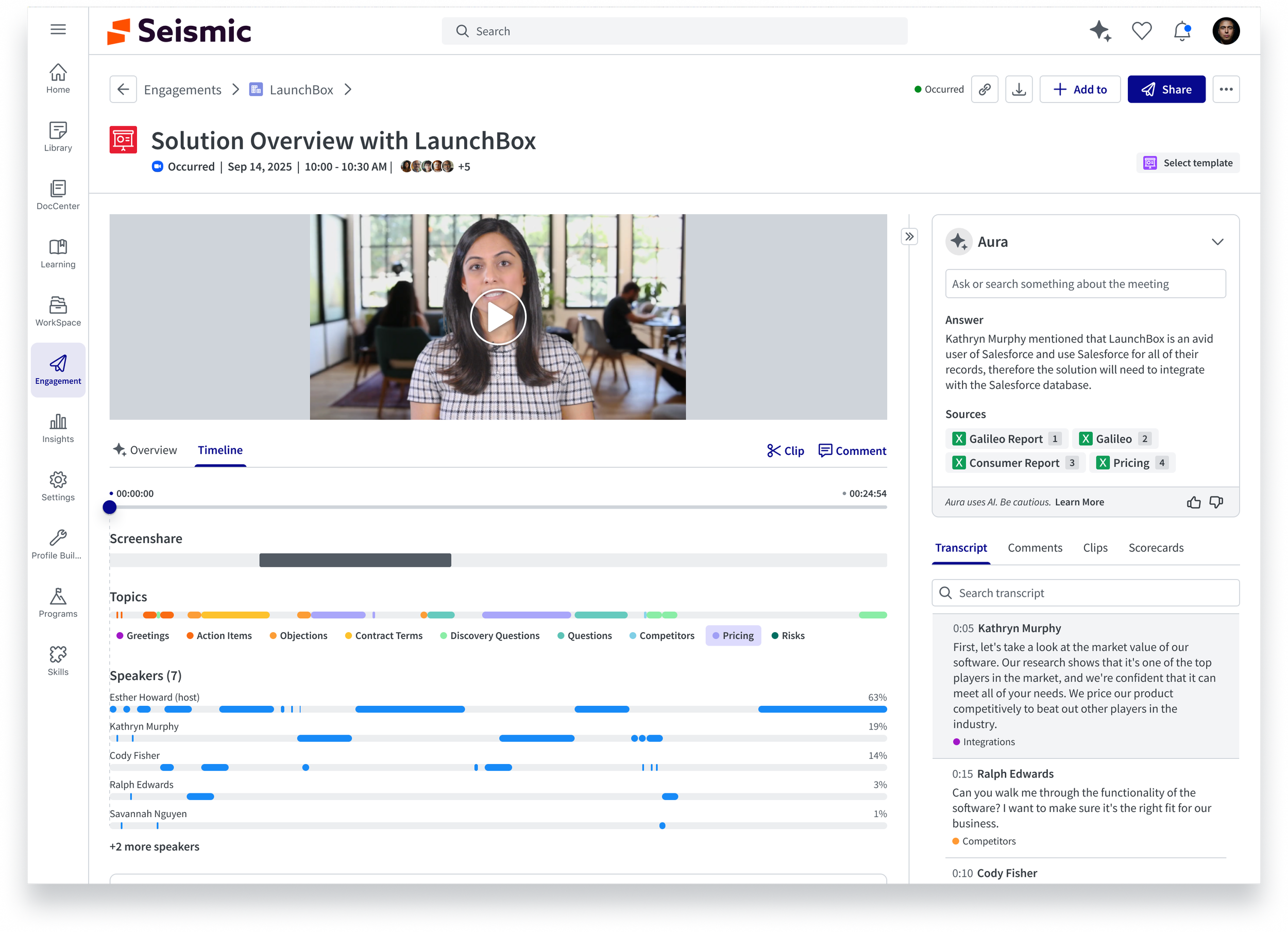 Sales cycles depend on effective meetings. Traditionally, sellers used meetings to engage, present, and close deals. Many tools ignore what happens after the meeting, like reviewing content and follow-up tasks. Seismic Software fills this gap by streamlining preparation, presenting, and follow-up. This helps sellers evaluate content success, improve follow-up, and close more deals efficiently.