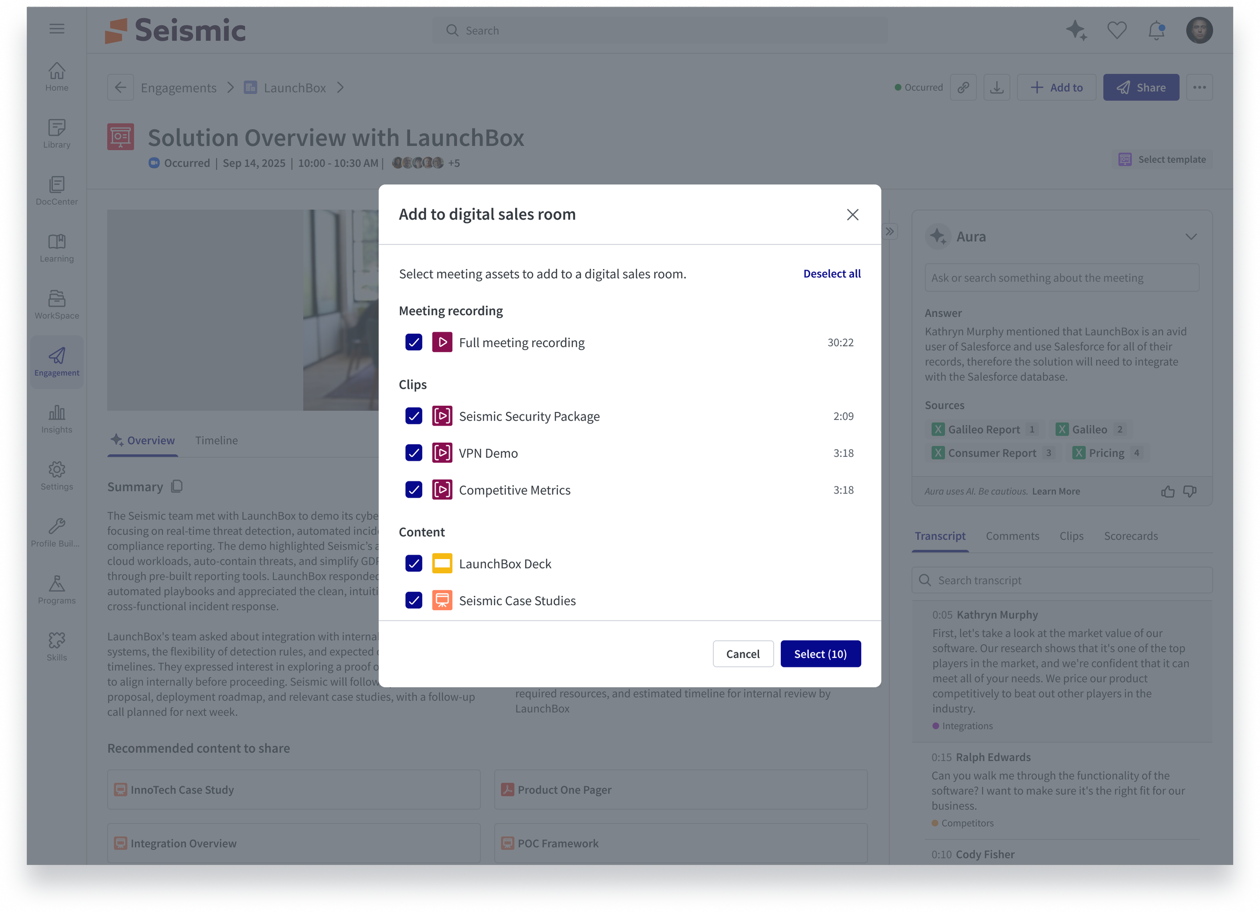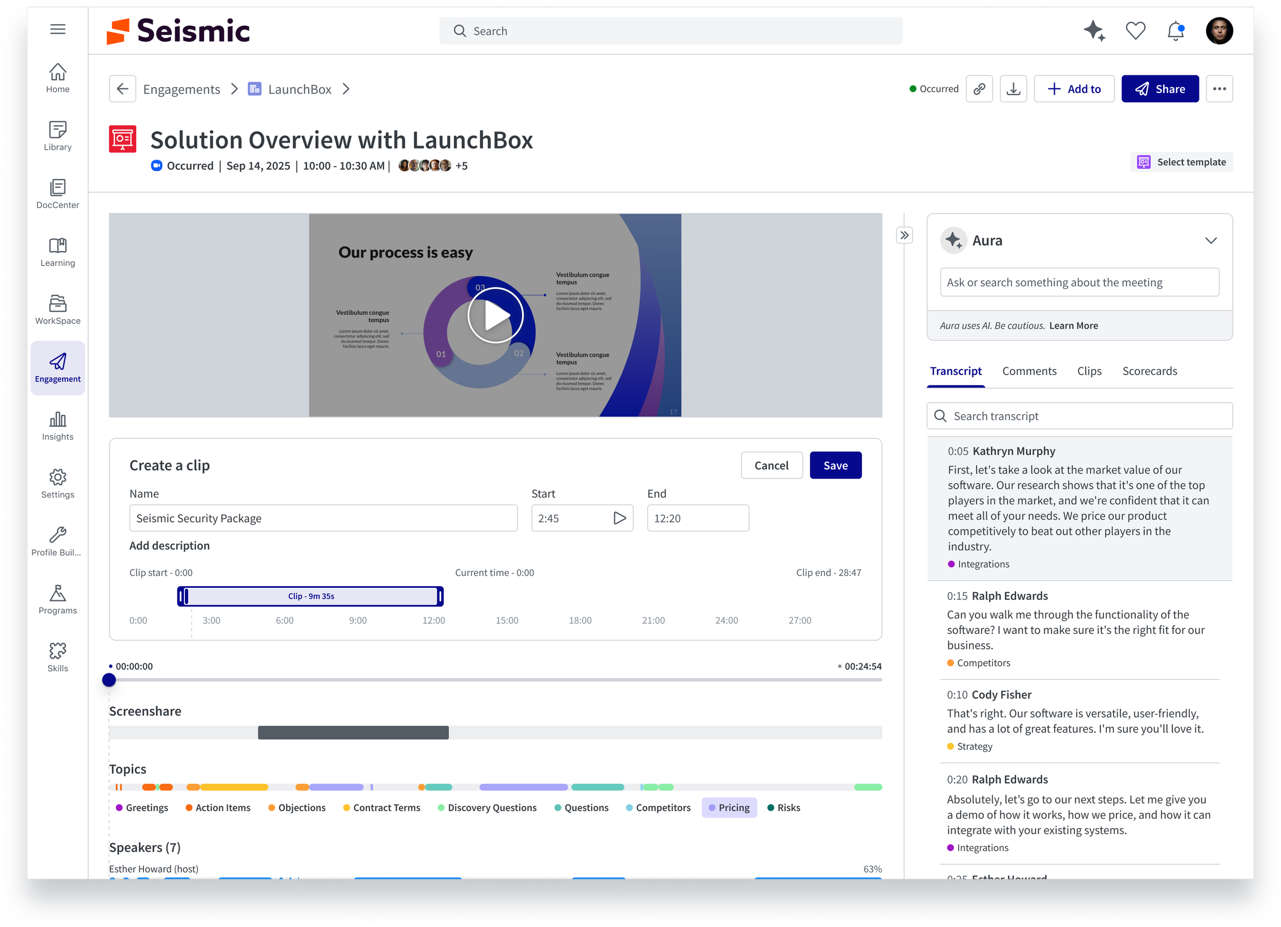 We’ve added our AI tool, Aura, to enhance this process. After each meeting, Aura creates a summary with key points and decisions. It lists tasks to ensure nothing is missed and suggests helpful content to share. Aura also lets users ask questions about the meeting for quick answers, saving time. Using Aura, sellers get better insights and follow-up support, leading to stronger engagement and faster sales.